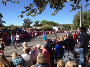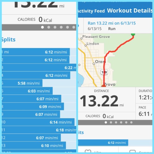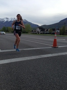 As soon as we came out of the canyon I did have to battle the race mentally because it was a little over 5 miles of a straight shot to the finish… Mentally I held up pretty good until the 11 mile marker. I still felt good but my thoughts were starting to go more on the negative side. I think, for me, what was hard was seeing the finish line a mile and a half out. I held on and finally broke 1:20 in the half. I ran a 1:19.21 (from my watch) and took 1st in overall women. I won either $250 or $300 in cash and a watch (I was not able to stay for the awards because I had to run to the high school track meet at BYU. I did get a 2 mile cool down in… Running 17 miles total.