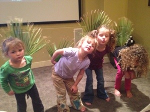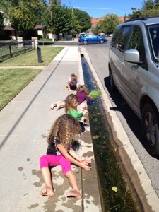 The girls playing in the gutter while we were waiting for Mike and Amy to return (Mike lost his car keys on the run somewhere :().