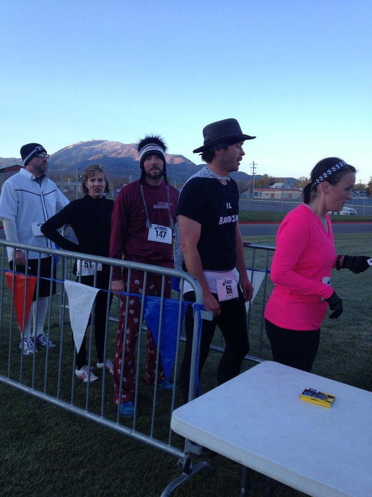 I decided at the last minute this morning to get up and head to Orem (25 minutes away) to race in a 5k race. I knew that if I didn’t do this race I would have a hard time running today with a tempo. Corom was very supportive and encouraged me to go… So I put on my Runner’s Corner racing jersey and racing attire and headed to the race. I met up with a lot of the other racing team members of Runner’s Corner…