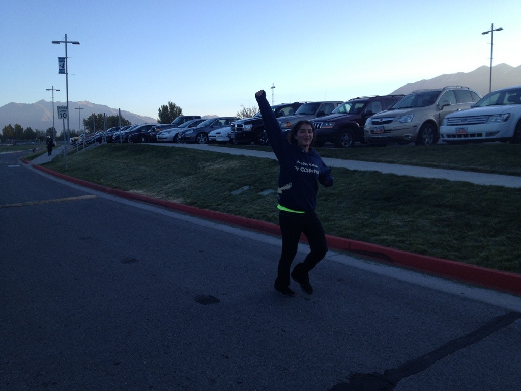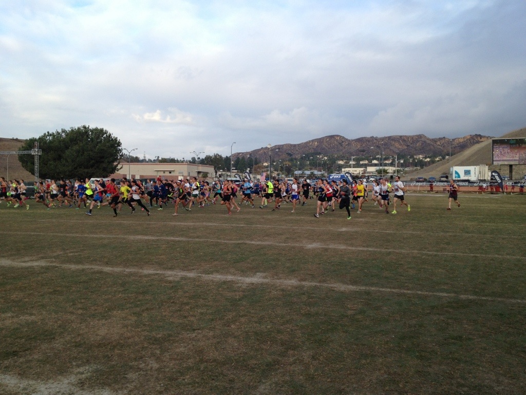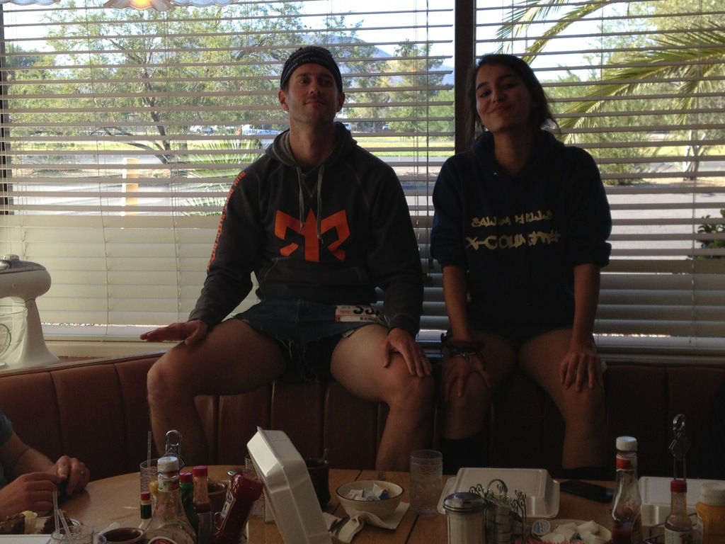 As we loaded the bus this morning to head over to Mt. Sac, we noticed a room full of 4 girls were missing. It was 6:45 at the time and my race started at 7:30. I ran upstairs and knocked on their door… Um yeah… I woke them up. We left at 5 after 7. I was able to warm up for 5 min before my race started. We had our freshman/sophomore race 15 minutes after mine started… They were a little nervous! We actually bumped them back into another race but for me I had to go. It went well, though (better than I thought it would) …