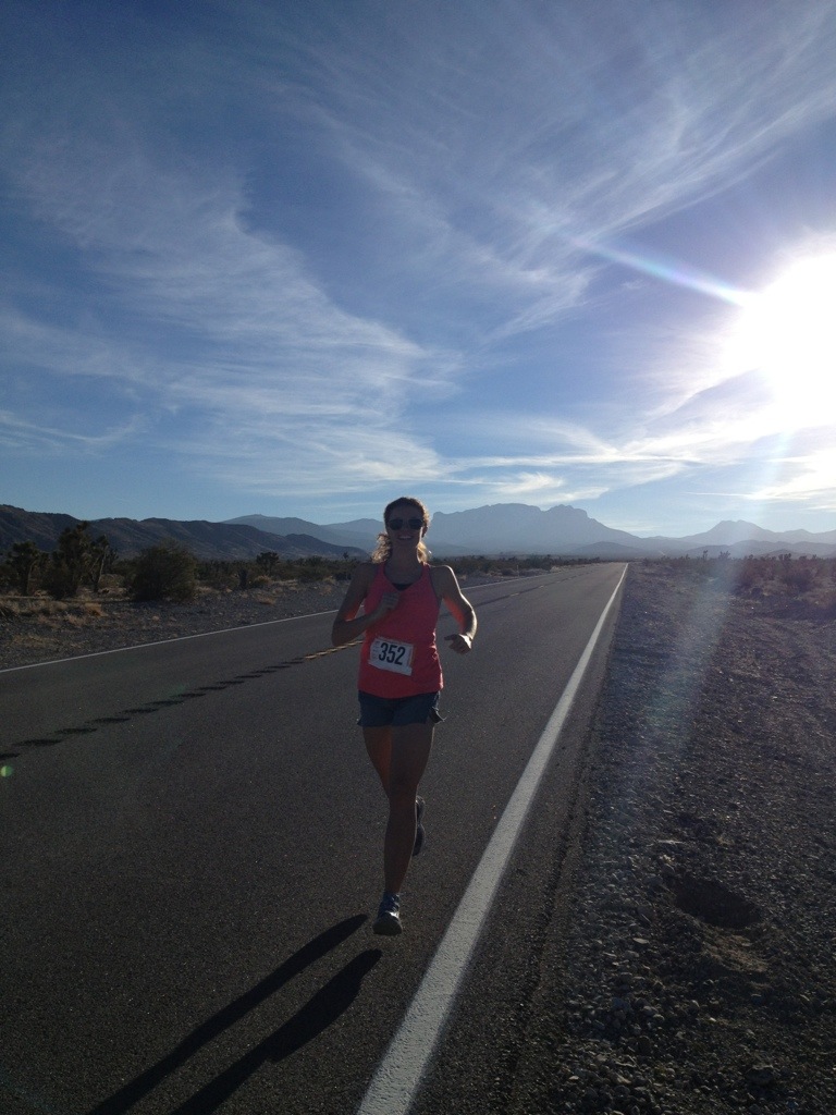 I’ve been out of the racing community for the last 2-3 years. Back in October I decided I wanted to train for the Houston marathon and try for the 2:45 time. I hired John from Ireland and he put me on a 12 week training plan. It was hard work but wonderful! I started off by pacing a friend of mine at the St. George marathon (in October)… and went on from there. She wanted to break 3:05 and we came in at 3:04:20… it was a great run to start off my training with!