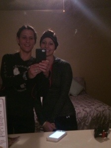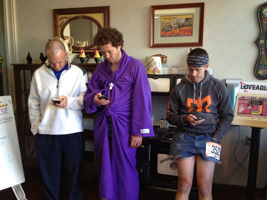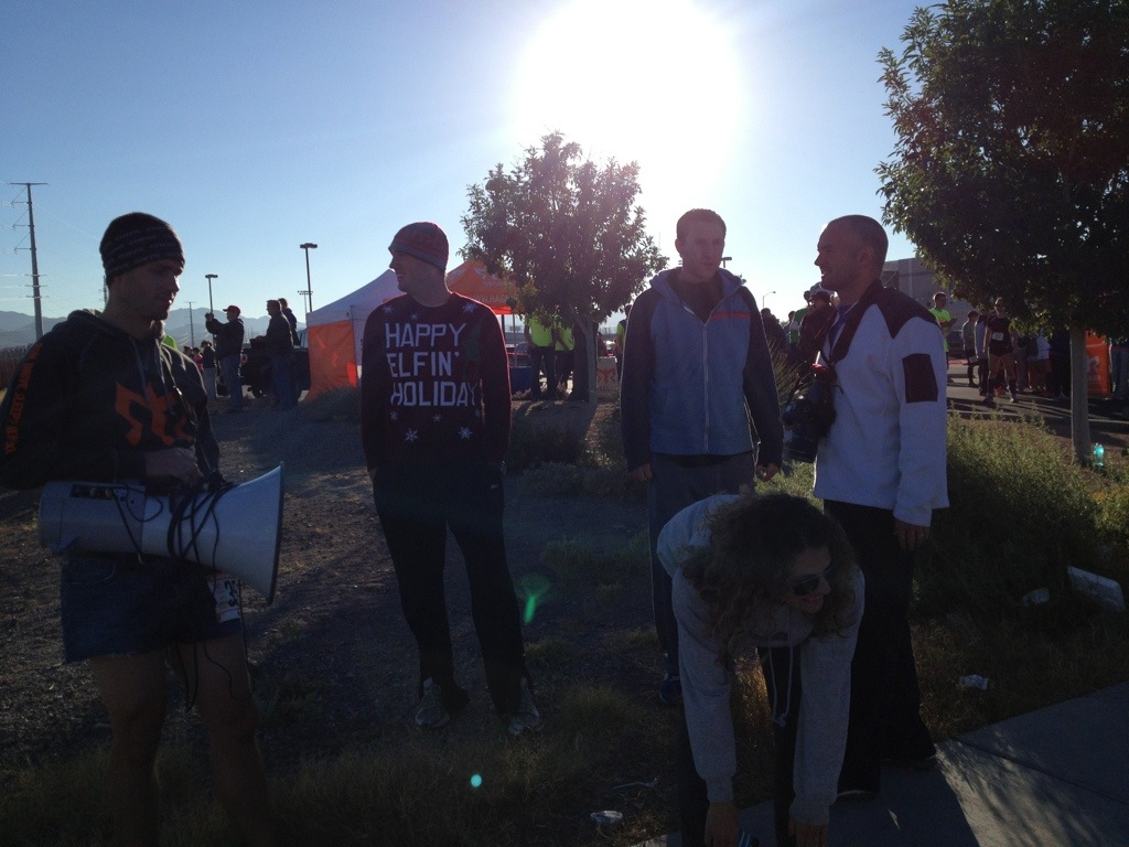 Yes… Warming up in a hot tub right before you race is not the best thing to do (it relaxes your muscles), but Corom, Mike and our other friend, Brady obviously weren’t worried about it. 🙂