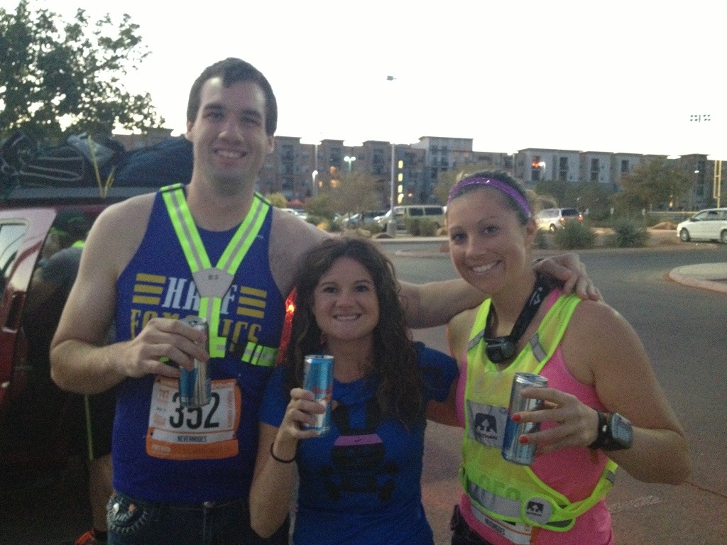 The trail Ragnar is nice because you have a base camp with 8 people on your team (in order: Tara-Clif rep, Corom-my husband & original nevernude, Kristen Bell-cofounder’s wife, Kelly Southwell-original nevernude- watch my video on this blog site for the nevernudes Las Vegas Ragnar to see what I’m talking about, Ryan Southwell-original nevernude, Me-an original nevernude, Karrie-Clif rep, & Tanner Bell- cofounder of Ragnar)… Anyway, it’s a base camp and one runner goes at a time. Once runner 1 is done with the green loop (easiest out of the 3, 3.2 miles), that person hands off to runner 2 who runs the yellow loop (medium, 5.6 miles). Runner 2 hands off to runner 3, who runs the Red loop (extremely hard 7.3 miles). Runner 3 hands off to 4 who then runs the green loop.
