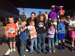Thank goodness he was given a warning… We met at the starting line at 8:15. Corom pushed the girls in our 4 kid stroller for the 5k…