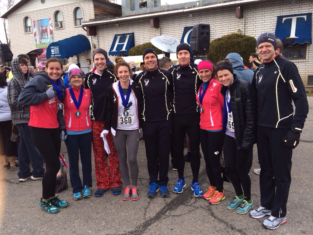 It was cold this morning but a perfect weather running cold! At 6:45 am we were off… I felt okay the 1st half. To be honest I didn’t think I was going to do it (break 3 hours). I had to take a bathroom break at mile 12 and I never pee during a race (well I have once during a race). I have been very fortunate/blessed in that category… Well except for today. 🙂 When I got to mile 13 I was at a 1:29.34. I ran with these 2 for a big chunk of the race and oh was it so nice and helpful…