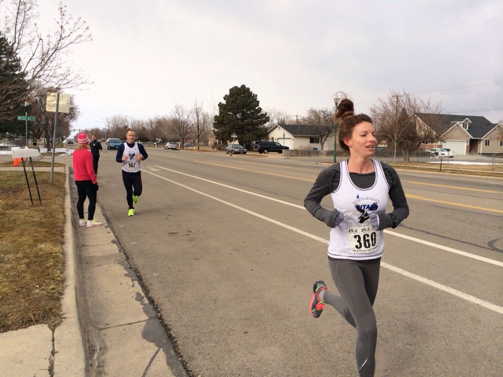Rachelle Wardle was a Major Help to me today!!! Even if I wanted to slow down, I wasn’t able to with her there. 🙂 She talked to me, sang to me, encouraged me, etc. the entire last 8 miles. She held a great pace and I just had to follow! Our last 3 miles were under 6:10s. I will admit, the last straight away to the finish line was forever long. My legs began to feel heavy and I realized how tired I was at that point. But I finished with an 8 min PR (personal record) in the marathon with a time of 2:54.22. I took 15th overall in the women, 5th in my age group and 1st in Utah County (which I won $100). My pace was a 6:39. I am stoked! Now I can quit… J/K.