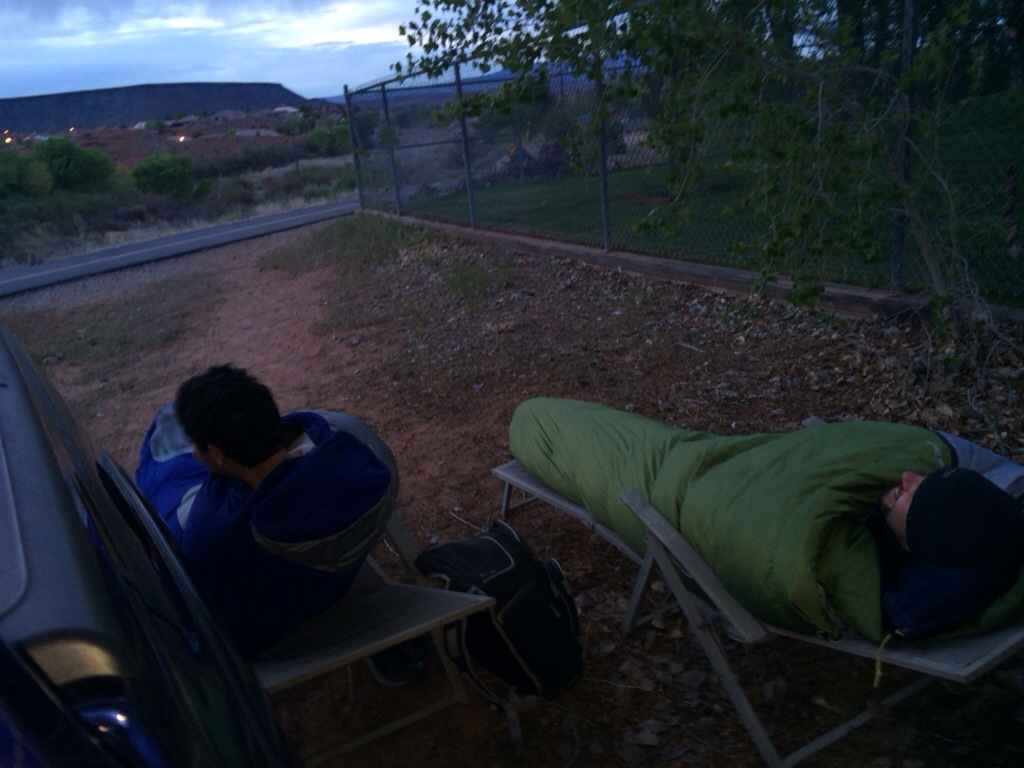 Corom, Mike and I woke up this morning to beautiful skies… But it was a cold morning. I slept in the truck while the 2 slept outside. They froze and I was good with being warm… My back was a little sore when I woke up but it was not a big deal. 🙂
