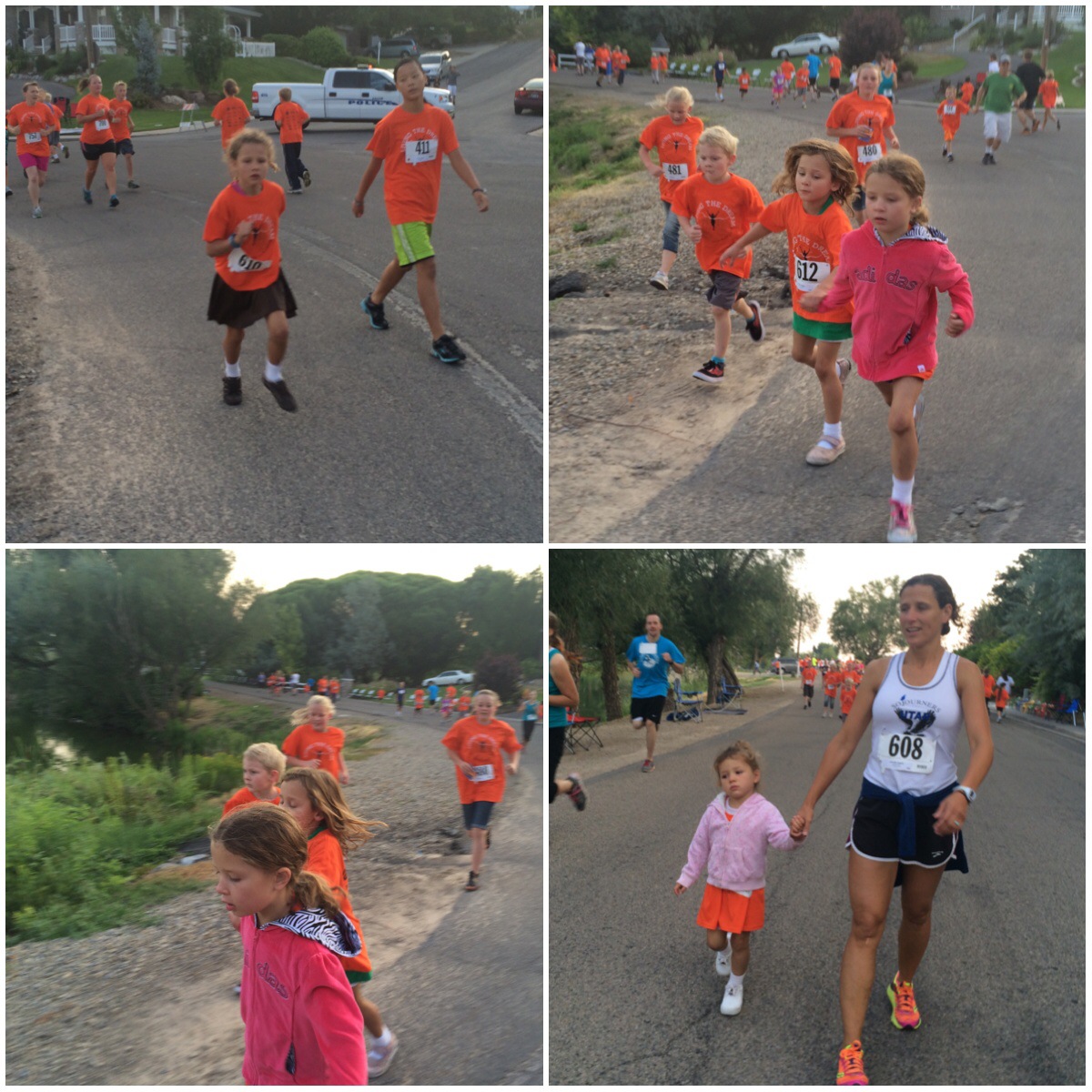 My kids ran in the mile race… They, too, did really well! The 2 older ones ran the entire way and the other 2 ran and walked. None of them had to be carried this year. The high school kids helped a lot!!!