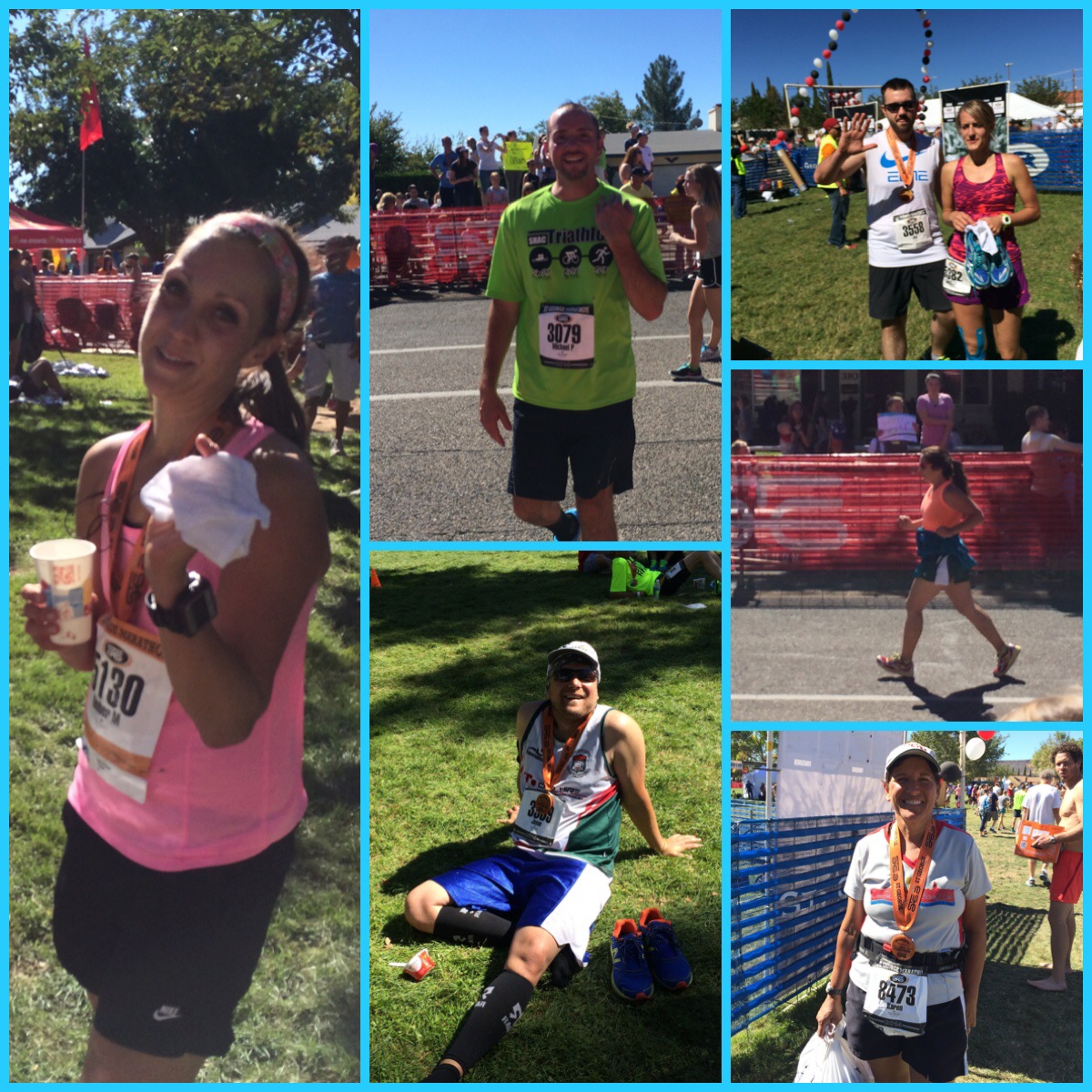 (this is actually last years pictures because I have not received this years pics yet.) It’s awesome because we were able to take 1st over all the relay teams… Including the BAM men’s team (who were all younger than us… Way younger than Jerry), the BYU men’s team, etc. At one point after the finish, one of the men’s team came up to us and asked who did the biking… They talked with Megan for a little bit, complimenting her, we talked about the running course and then they asked who and where our swimmer was (Jerry was standing right next to us)… When we said he is right here, I think we really surprised them & depleted their egos a little. He did amazing! I ran the 1/2 in a 1:24… I thought I didn’t do so well and was discouraged. But I looked at my time from 2 years ago on this course and I ran a 1:25:16, then ran a 2:54 marathon 7 weeks later. Last year I ran a 1:24.33 and ran the 2:48 marathon. So that gave me some hope and took away a little of my discouragement. But every year I forget that the 1st 4 miles has a slight uphill… And the next has the flat and down (and you repeat the loop). This course is hard with the heat from running that late (10:30-11:54) and with the course not being flat like I always think it is…. I just forget. I was glad to finish. I did run 4.3 before and a little over 2 after (but about 2 hours after).
