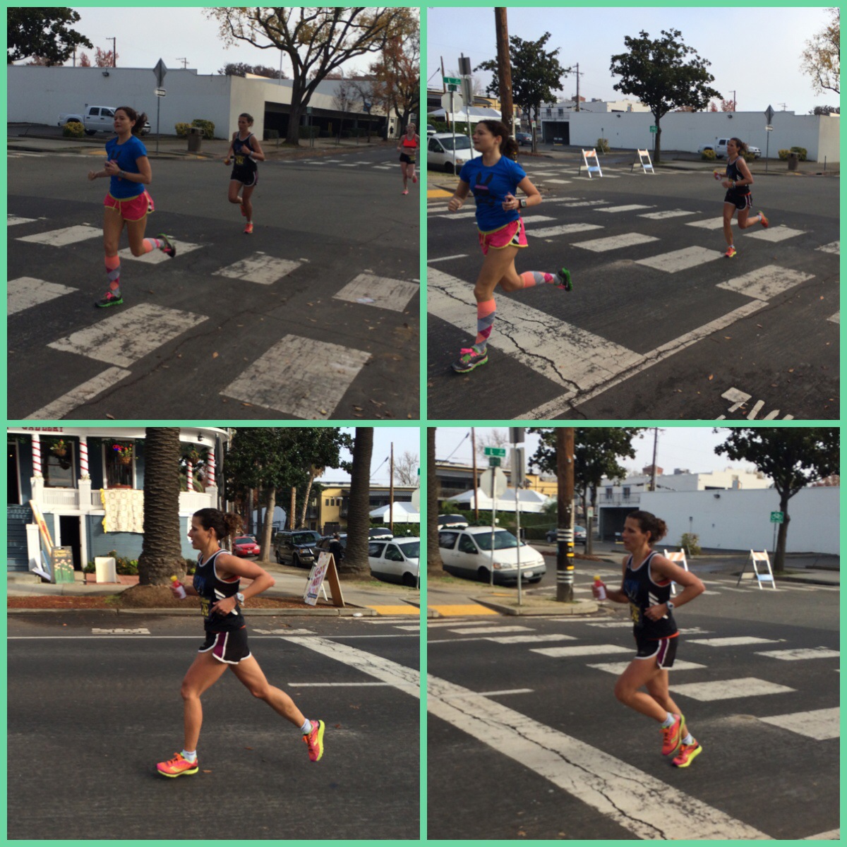 I hung out in the American Development tent with about 200 other people trying to qualify for Olympic Trials… The nervous energy was so intense and heavy! My nerves were so strong. I just wanted the race to start. And then right at 7:30 we were off! I felt so good… More than good, great. My garmin kept beeping every mile and I was faster than my splits! I was excited. My half was right at a 1:20… I knew I had another half marathon in me… These were the 1st 17 miles from my garmin: (my garmin went out on me when I was writing it down and I know that my last 2 miles were a 6:43 and a low 7- maybe 7:03).