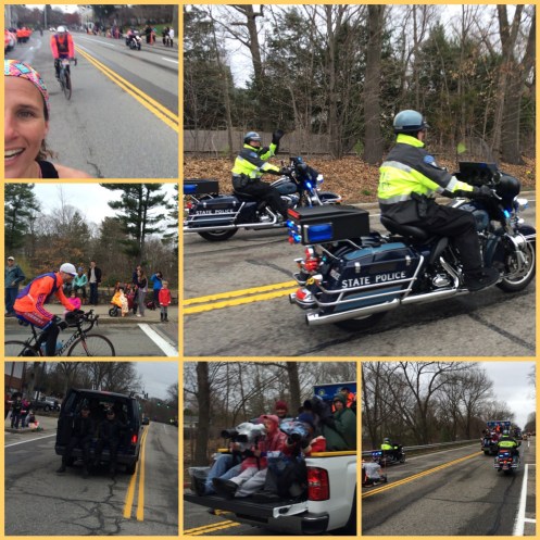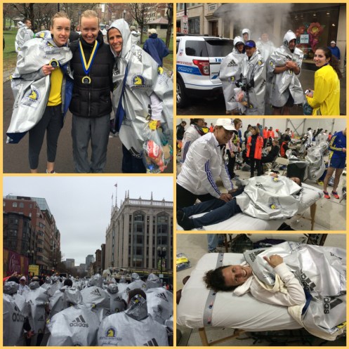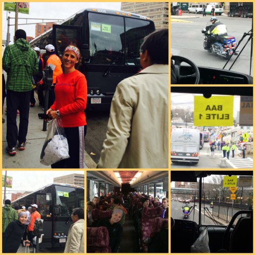 Monday: Boston Marathon!!! I have so many mixed emotions right now. My plan was to drop back to the 10 start time and begin with the rest of the running crowd, but I found out that I would be docked 28 minutes if I went back from the elite women’s group. No pressure, right? I am going to be left in the dust from mile 1!!! Ugh! On the flip side… Getting into the elite buses with all the other elites was amazing!!! Having police escorts and the freeways shut down for the buses to come through was amazing.