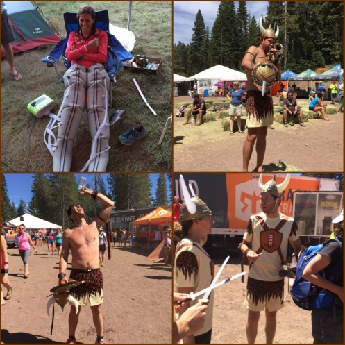 You cycle through all 3 loops running non-stop as a team… I ran the 1st one (which was the red loop) around 6 p.m. (Our group started at 1… The earliest groups started at 10 a.m. and the last groups started at 4 p.m. It all depends on your times.) It was amazing. Very Hard with a hard climb up to the top of Soda Springs Resort (or something). The trails (on all 3 loops) were amazing! It was 7.3 and I ran it in 59:57. I handed off to Karrie… I went back to our camp and rested, hung out, ate, etc. The weird thing around my legs were a compression thing that helped your legs not to ache for your next run. Chris (one of the CEO’s) brought it. And as you can see, Corom was as entertaining as ever. Everyone loved him there!!!