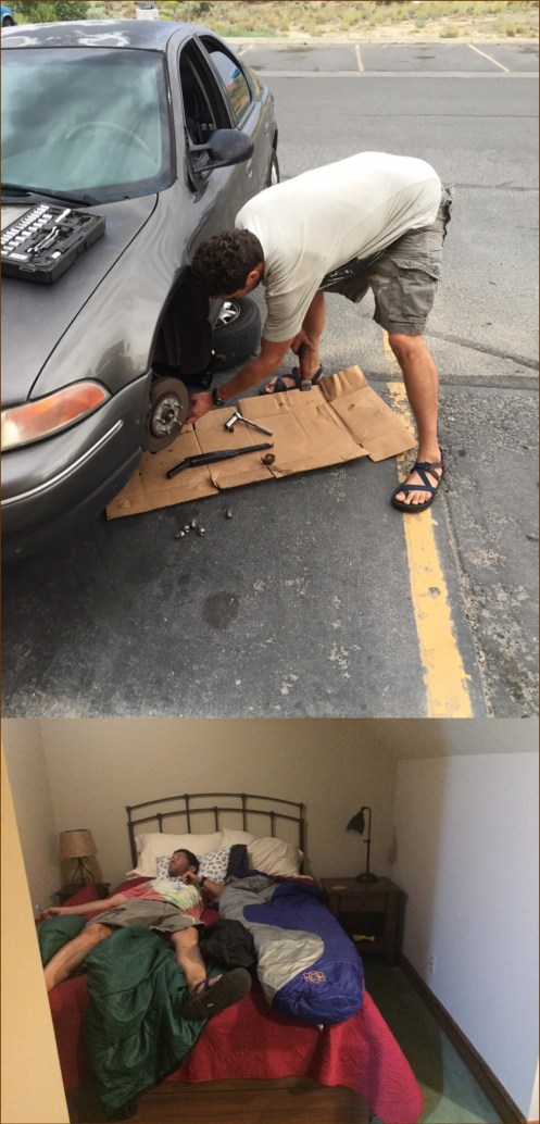 Thursday-Saturday (our trip to Tahoe with Ragnar): After we dropped the kids off at my sisters (around 3 p.m.), Corom and I finally headed out for Tahoe. We are running the trail series of Ragnar. We caravaned down with the Bells. Tanner is the co-founder of the Ragnar relay races. We are running on his team but running for Clif Bar. The Clif Barbarians. We stopped in Elko (where Corom and I were arrested together) to fix the tie-rod in our car and to grab something to eat with the Bells. We finally made it into Tahoe and stayed at the condos that the rest of the team stayed at (thanks to the Clif Bar representatives).