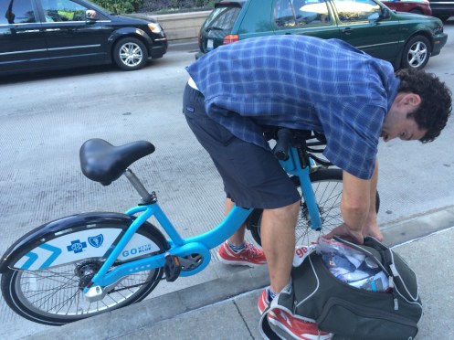 Oh the swim was the worst part!!! I am not a strong swimmer (as I just stated) and it was tough. I had to doggy paddle at one point in the race. I was grateful when the kid who was counting my laps finally said I was done (the swim was in a pool… Thank goodness and it was 16 laps total). I finished that in 10:23 and ran out to get my bike and put on shoes, clothes, etc.