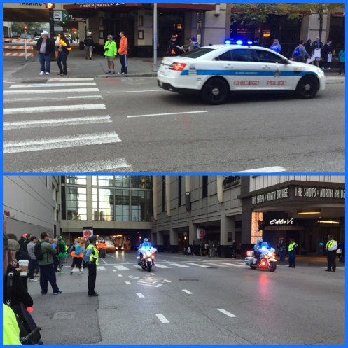 The elite men caught me at about mile 15 or 16… I carried my phone mainly for this reason! I was hoping to take a selfie with the pack of elite men behind me but I wasn’t able to make it work. 😦 I still took pictures of the whole production of the bike pacers, camera/TV crew, officers, etc. A few laughed at me because I probably looked like a tourist.